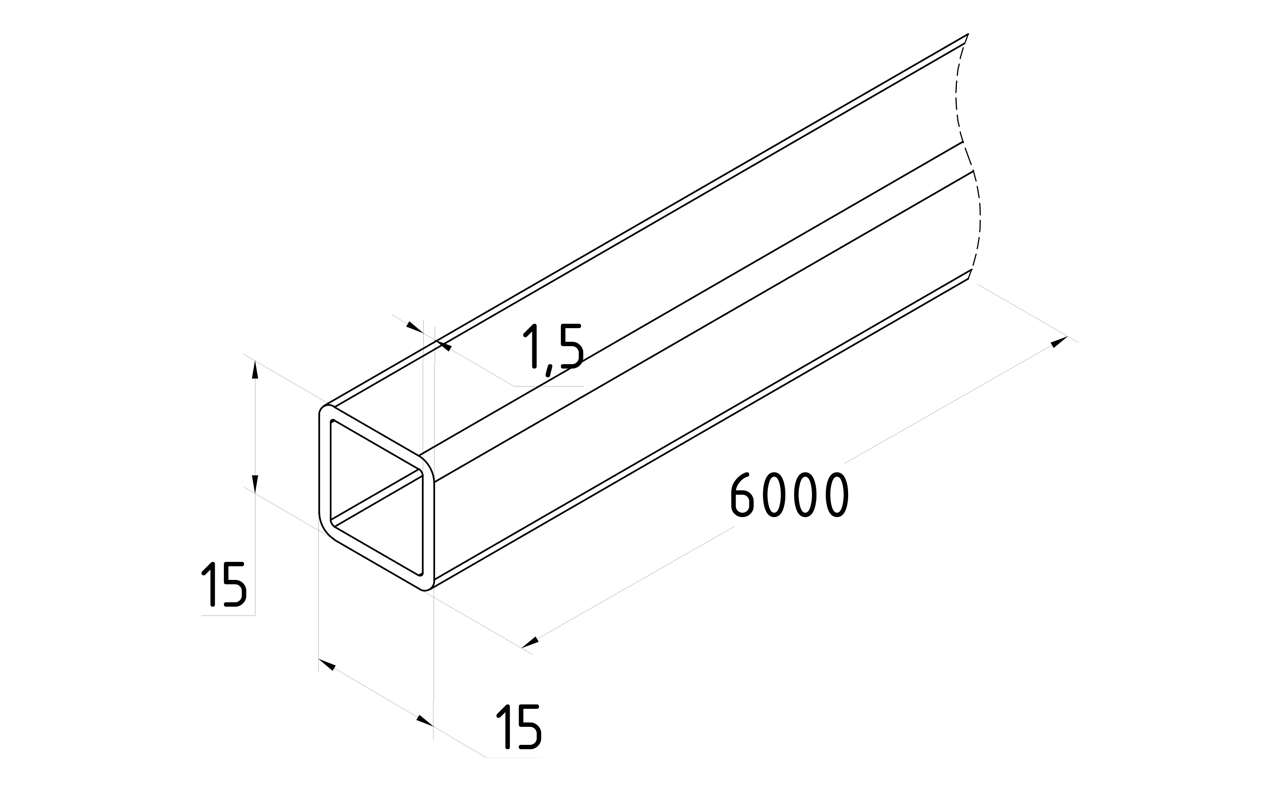 Труба нерж. AISI 304, 15х15 x1.5 х 6м, полированная k878