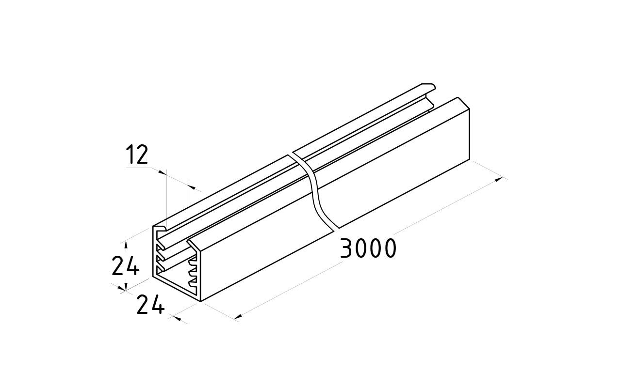 Уплотнитель в поручень с пазом 24х24 для стекла 12 мм, EPDM Фk301