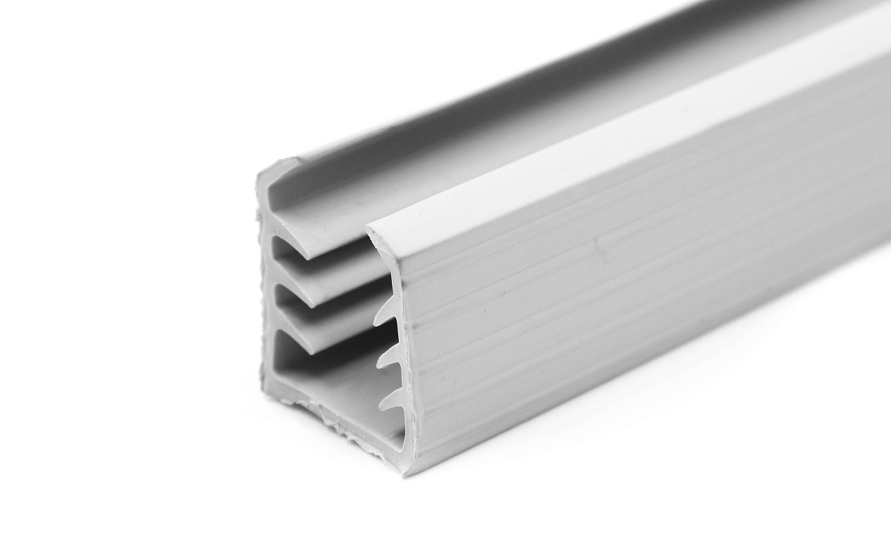 Уплотнитель изготовлен из специального EPDM (Этилен-пропиленовый каучук). Он имеет превосходную термо- и износостойкость, также устойчив в агрессивных средах, обладают хорошими диэлектрическими свойствами. При эксплуатации поручень с таким уплотнителем не болтается и жёстко сидит на стекле. Не рекомендуется хранение в холоде