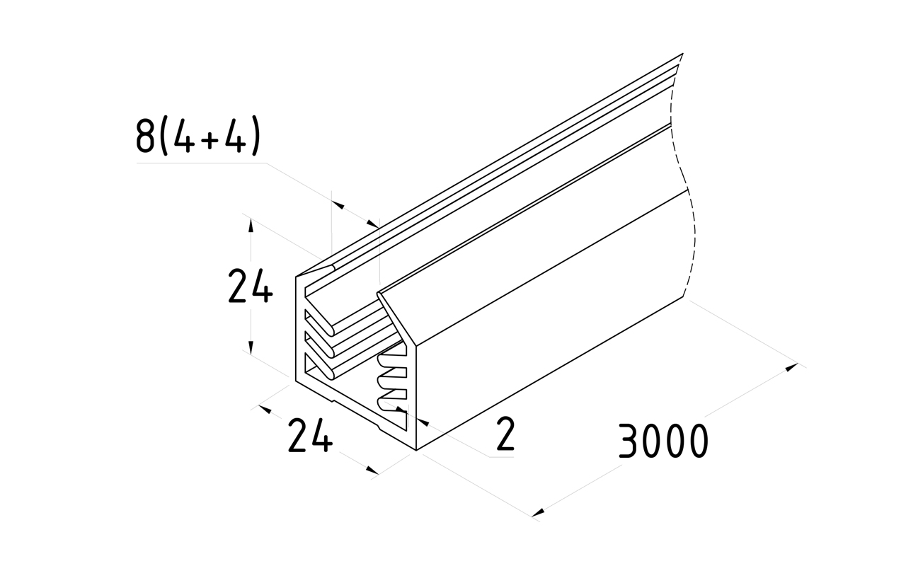 Уплотнитель в поручень с пазом 24х24 для стекла 8+8мм, EPDM (палки по 3м) СЕРЫЙ Фk303-G