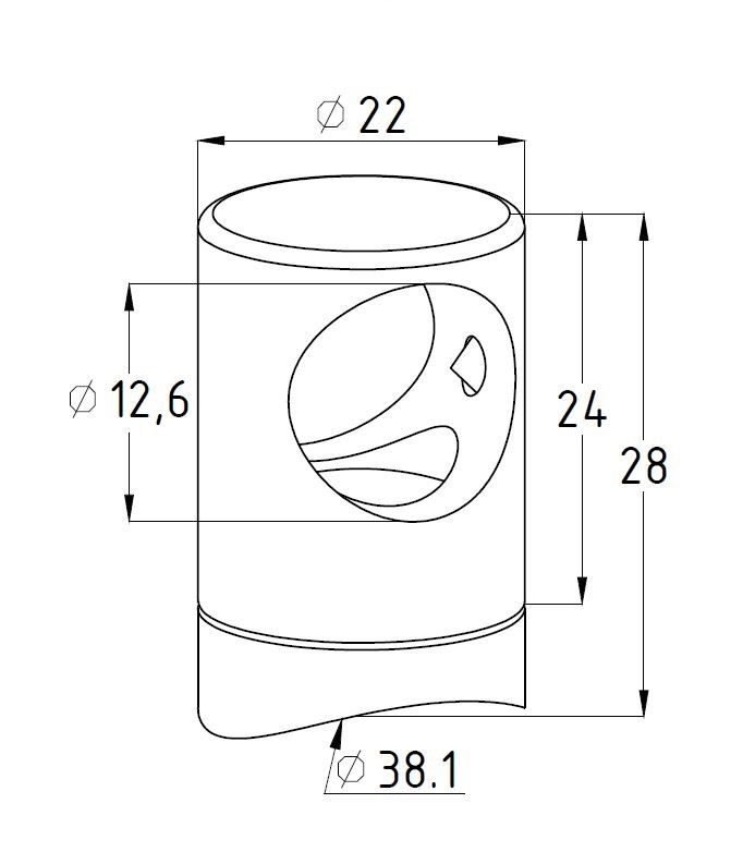 Внешний Ø22 мм, вынос 34 мм, отверстие Ø13.2 мм, шестигранник 2.5 мм