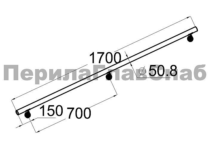 Готовый пристенный поручень с тремя держателями, длина 1700мм (aisi 304)