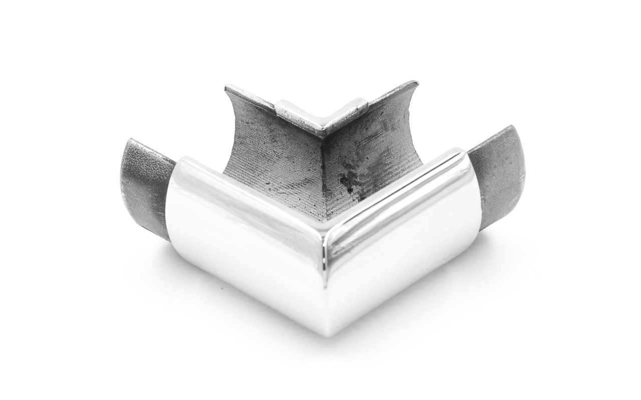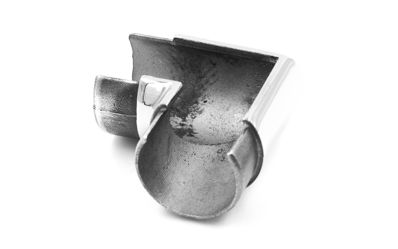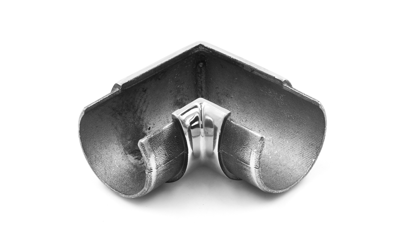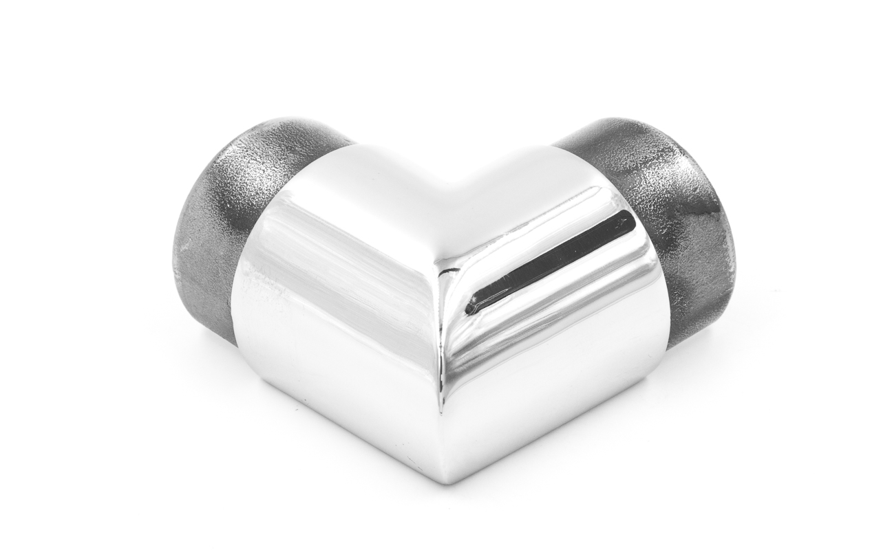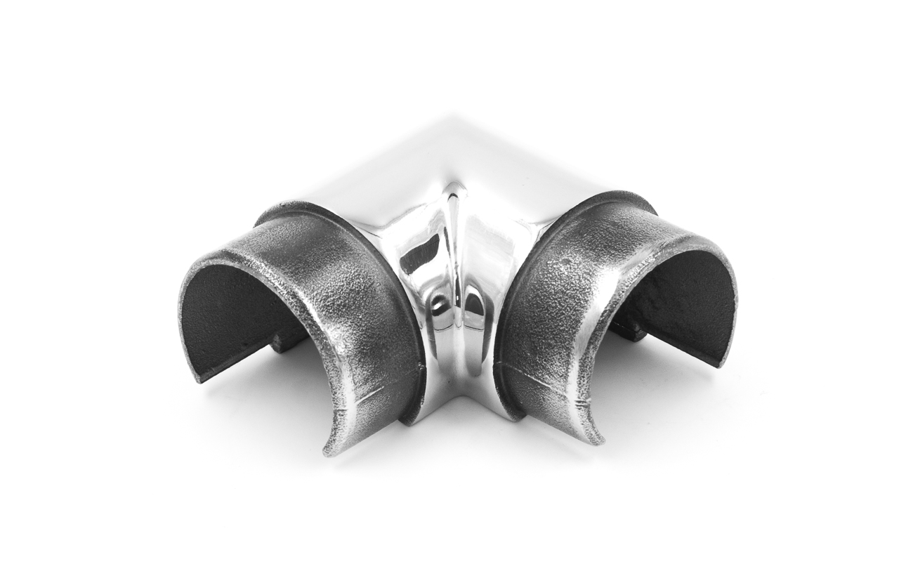 Отвод поручня с пазом Ø42.4 мм, 90°, с вставками для трубы. Деталь полированная, литая. Марка стали - AISI 304