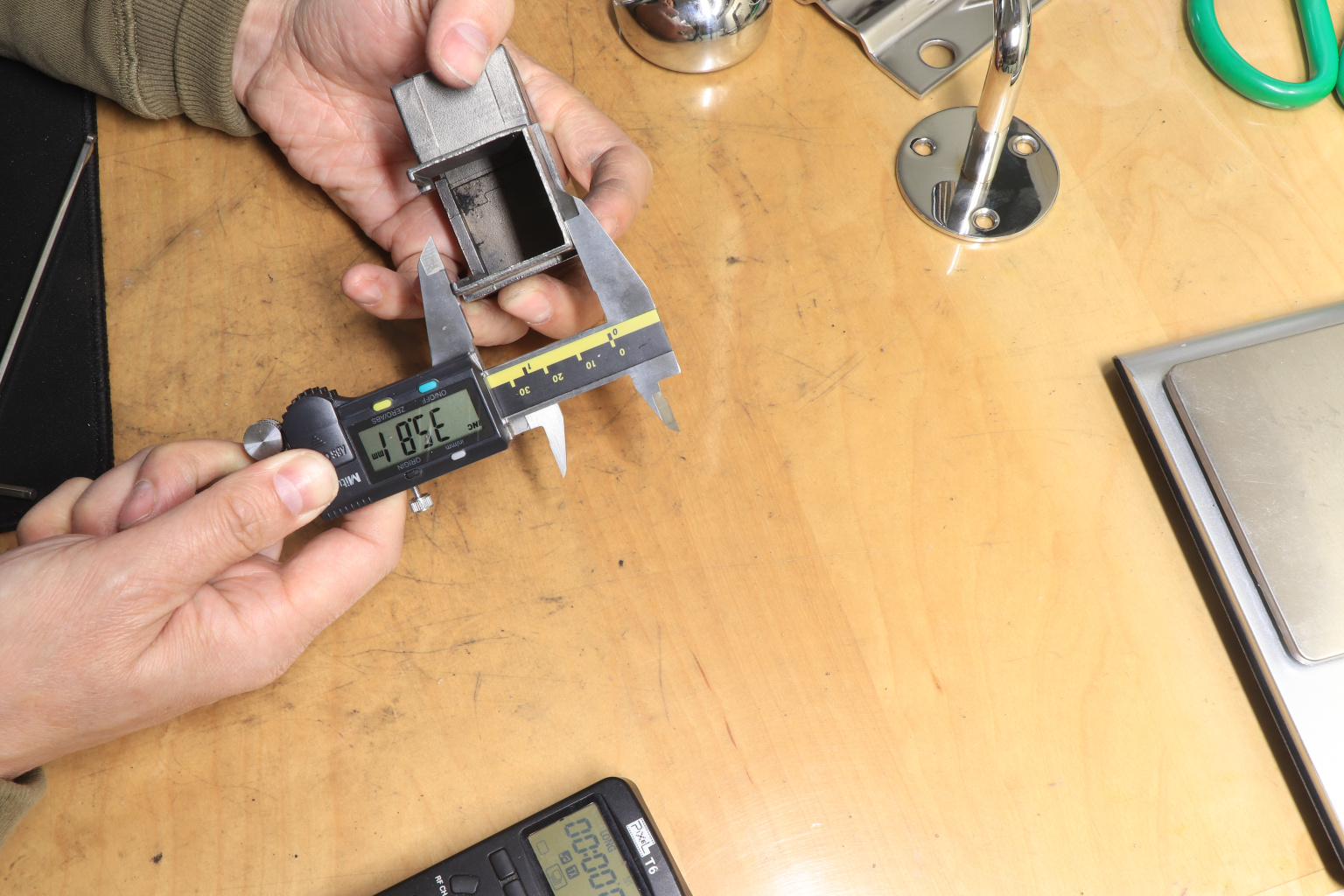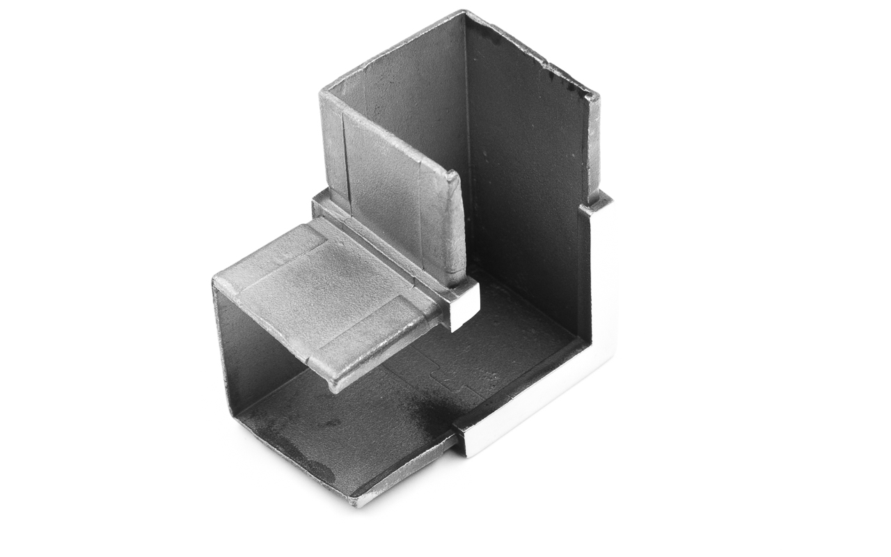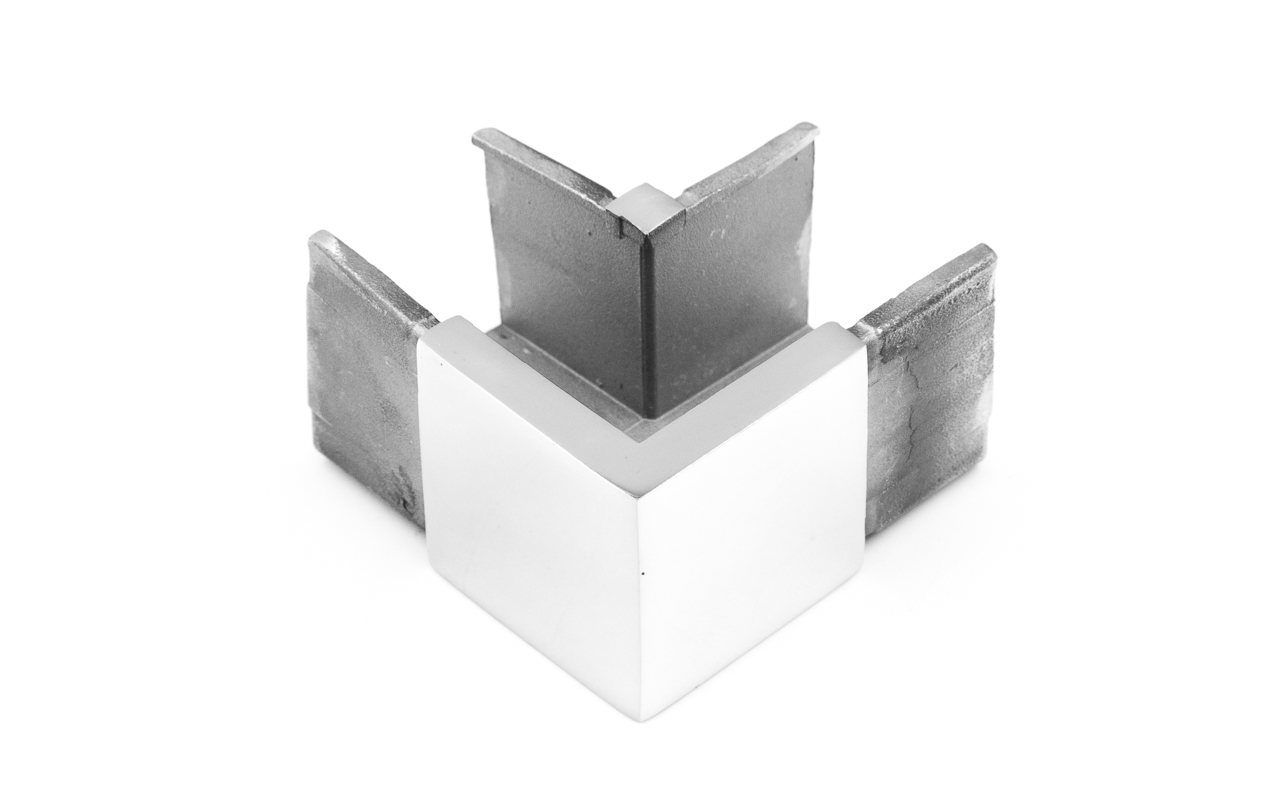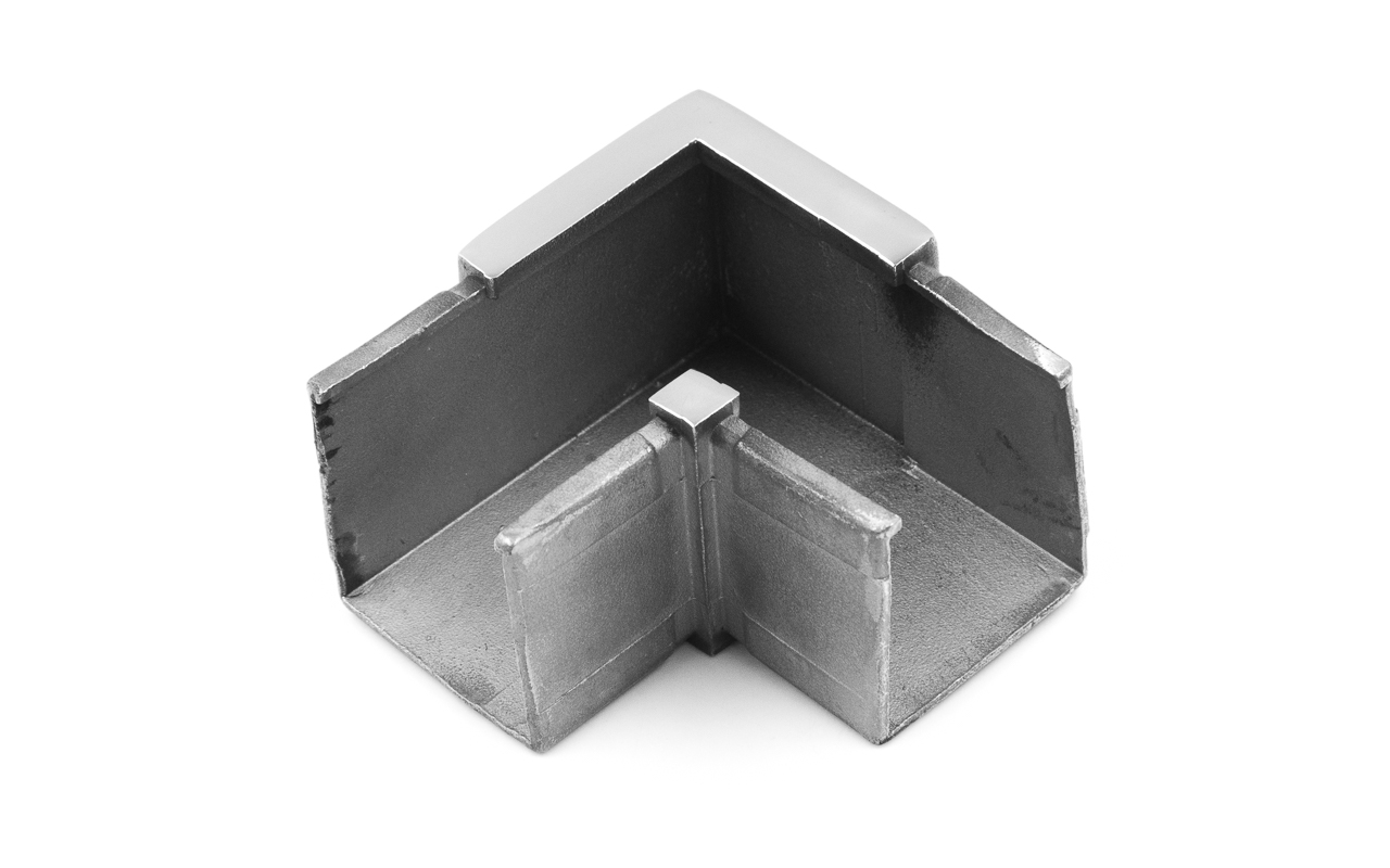 Отвод для поручня с пазом 40х40 мм. Деталь полированный, марка стали - AISI 304.