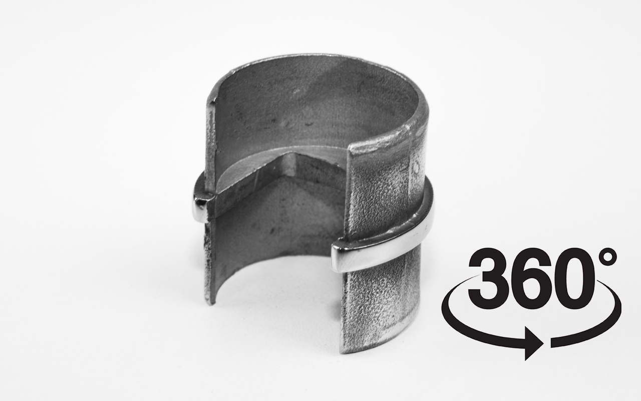 Применяется для соединения труб нержавеющего поручня Ø42.4 с пазом 24х24 под стекло на ограждениях элитного класса с так называемым на языке профессионалов отрасли несущим стеклом.
