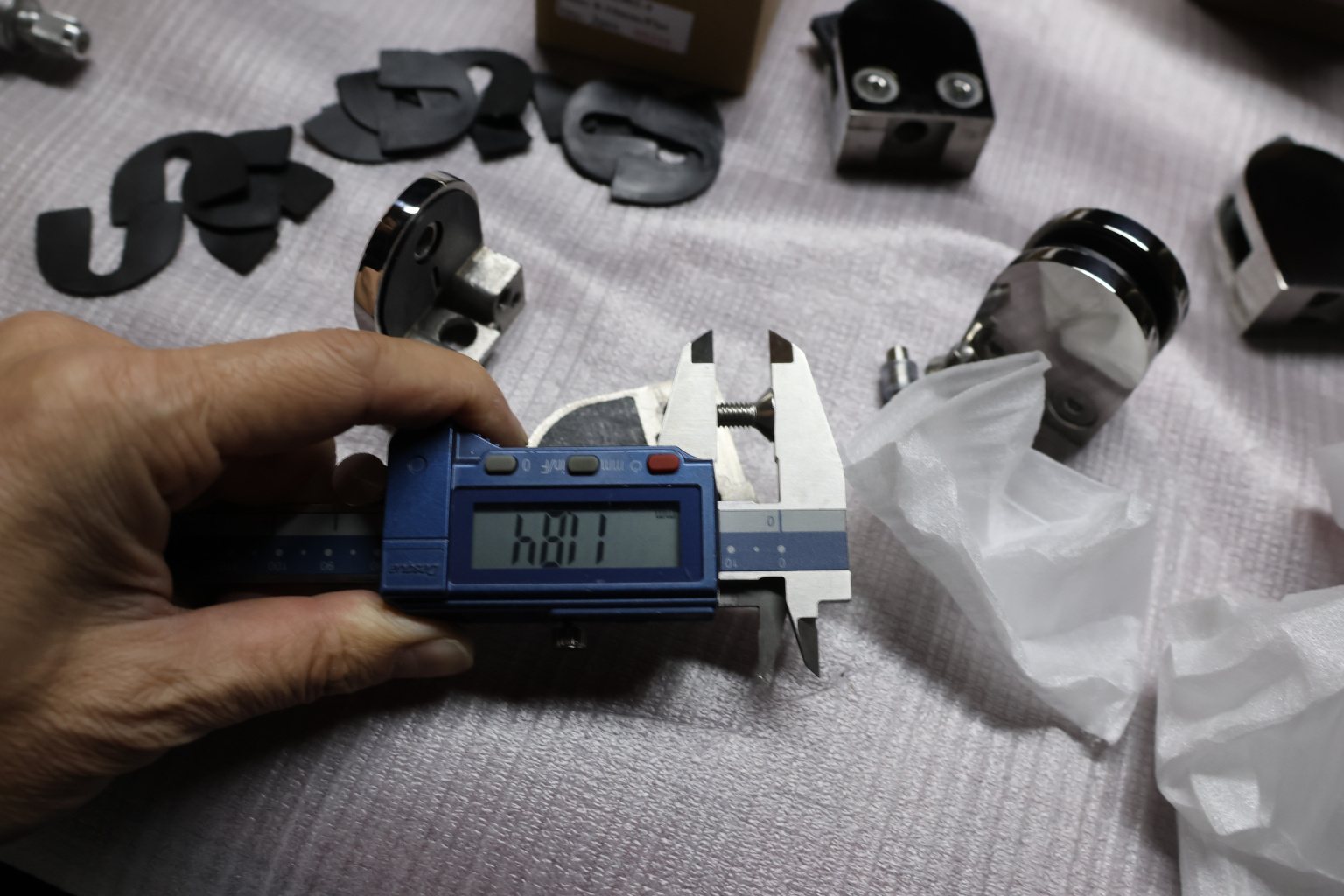 Данная модель выполнена методом литья, поэтому обеспечена существенным запасом прочности. По умолчанию, стеклодержатель подготовлен для зажима стекла толщиной 8 мм, но если нужно использовать на ограждении стекло 10 мм, нужно заменить штатные уплотнители на модель k005.
