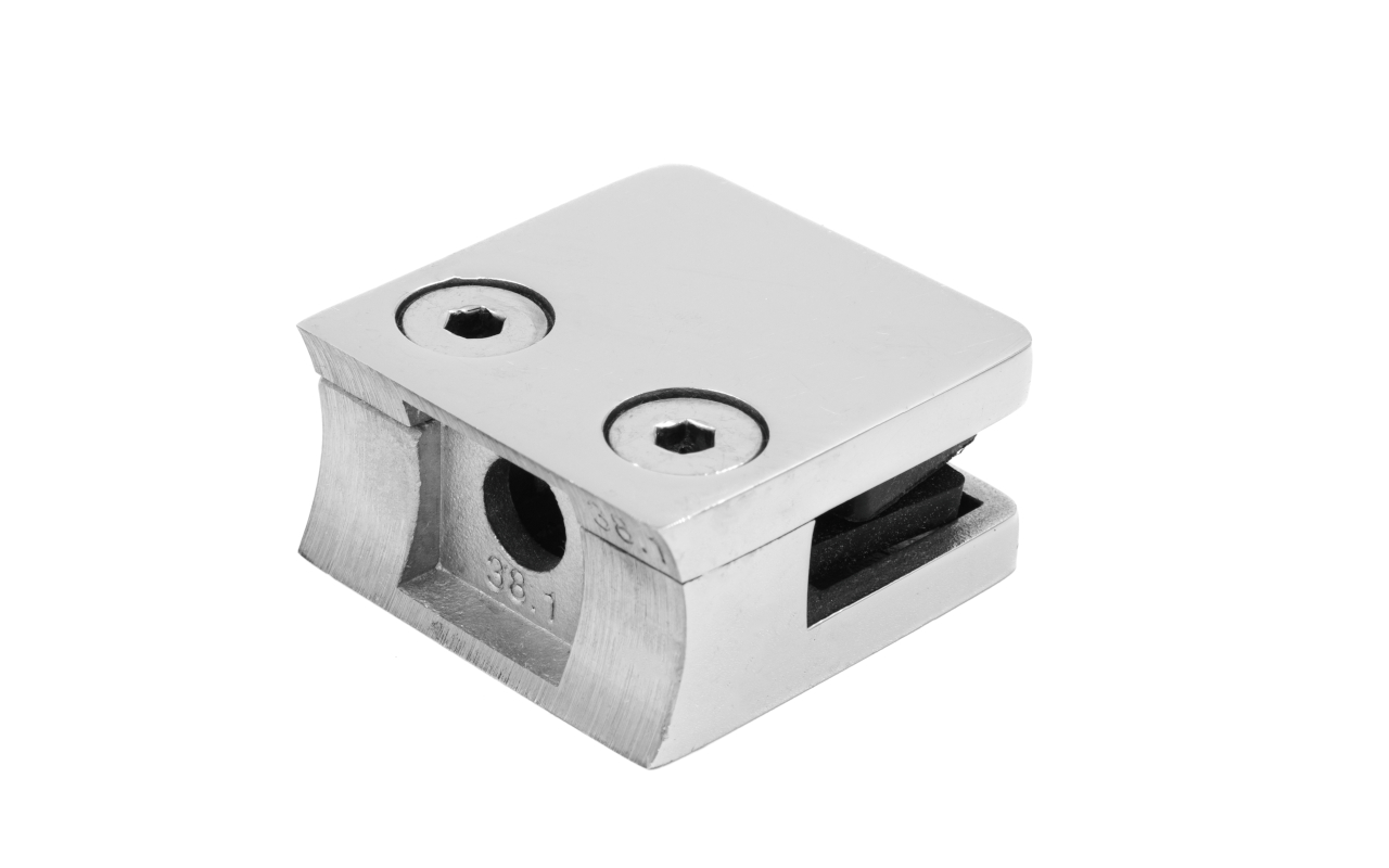 Стеклодержатель штампованный под стекло 8мм (4+4 мм), под стойку Ø38.1 мм 40х22х54, полированный (AISI 304) k538-2 купить в Тюмени