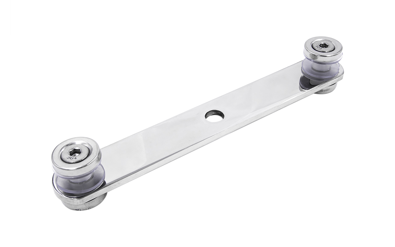 Стеклодержатель пластинчатый 3хМ8, по центрам 170х5 мм, полированный, шайбы 5 мм штамп., под стекло 6-12 мм, AISI 316 k023-8