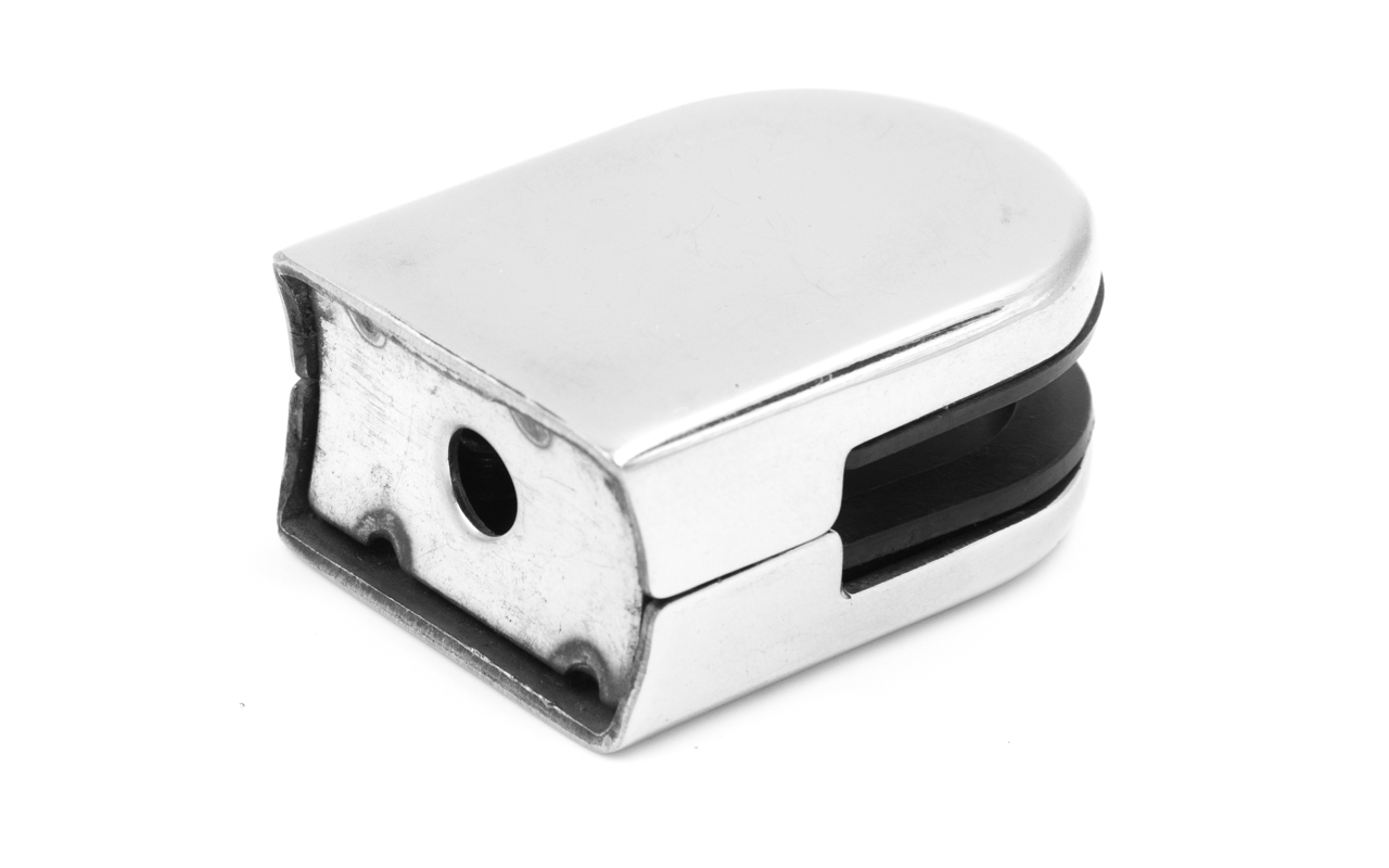 Стеклодержатель штампованный под стекло 8 мм (4+4 мм), под стойку Ø38.1 мм 40х24х54, шлифованный (AISI 304) Фk038-2