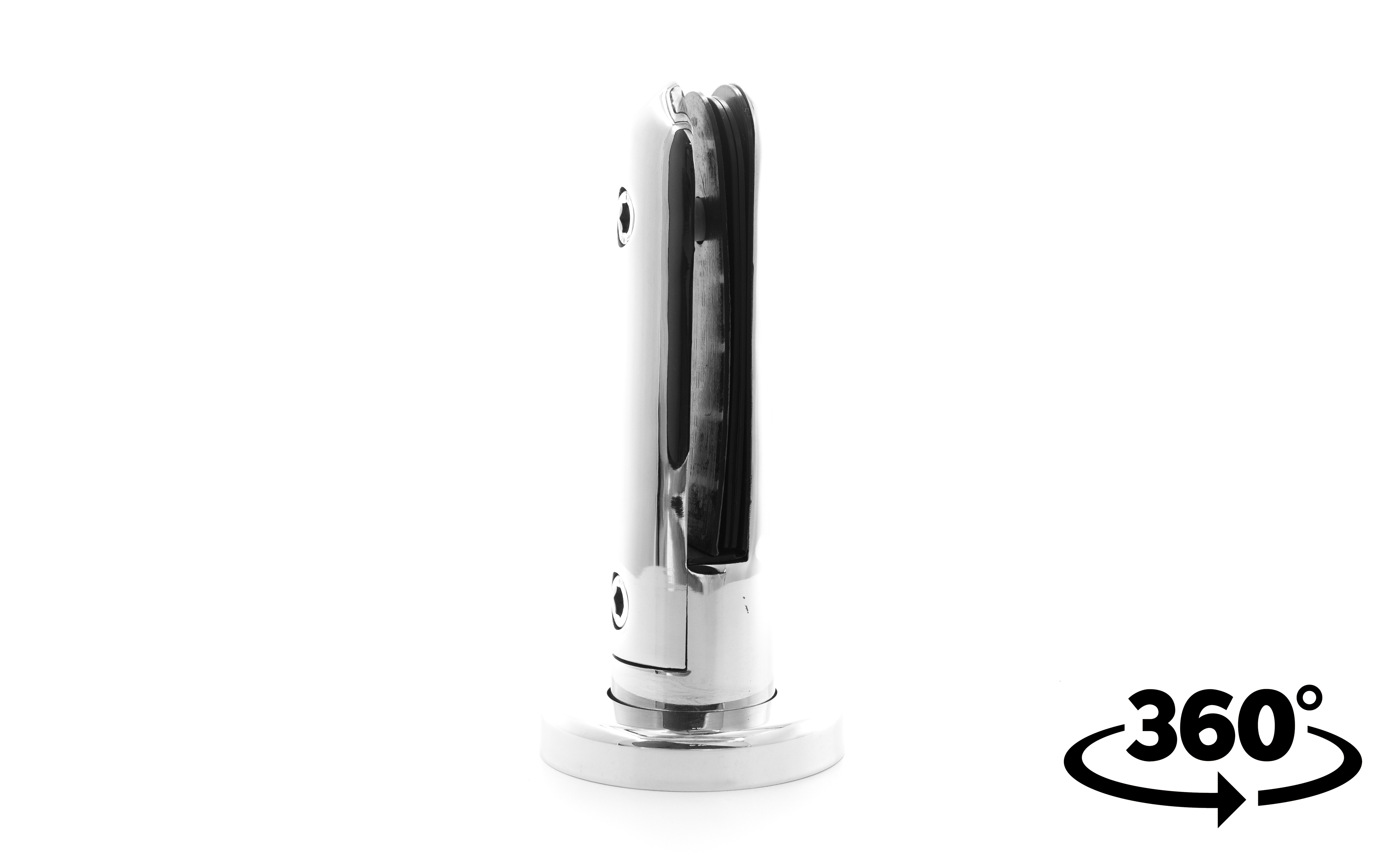 Стеклодержатель литой напольный, круглый Ø50х190 мм, полированный. Марка стали - AISI 304. В комплекте идут 4 уплотнителя: 2 пластиковых и два резиновых. Вам понадобиться для крепежа потайной винт под шестигранник k601-19-120