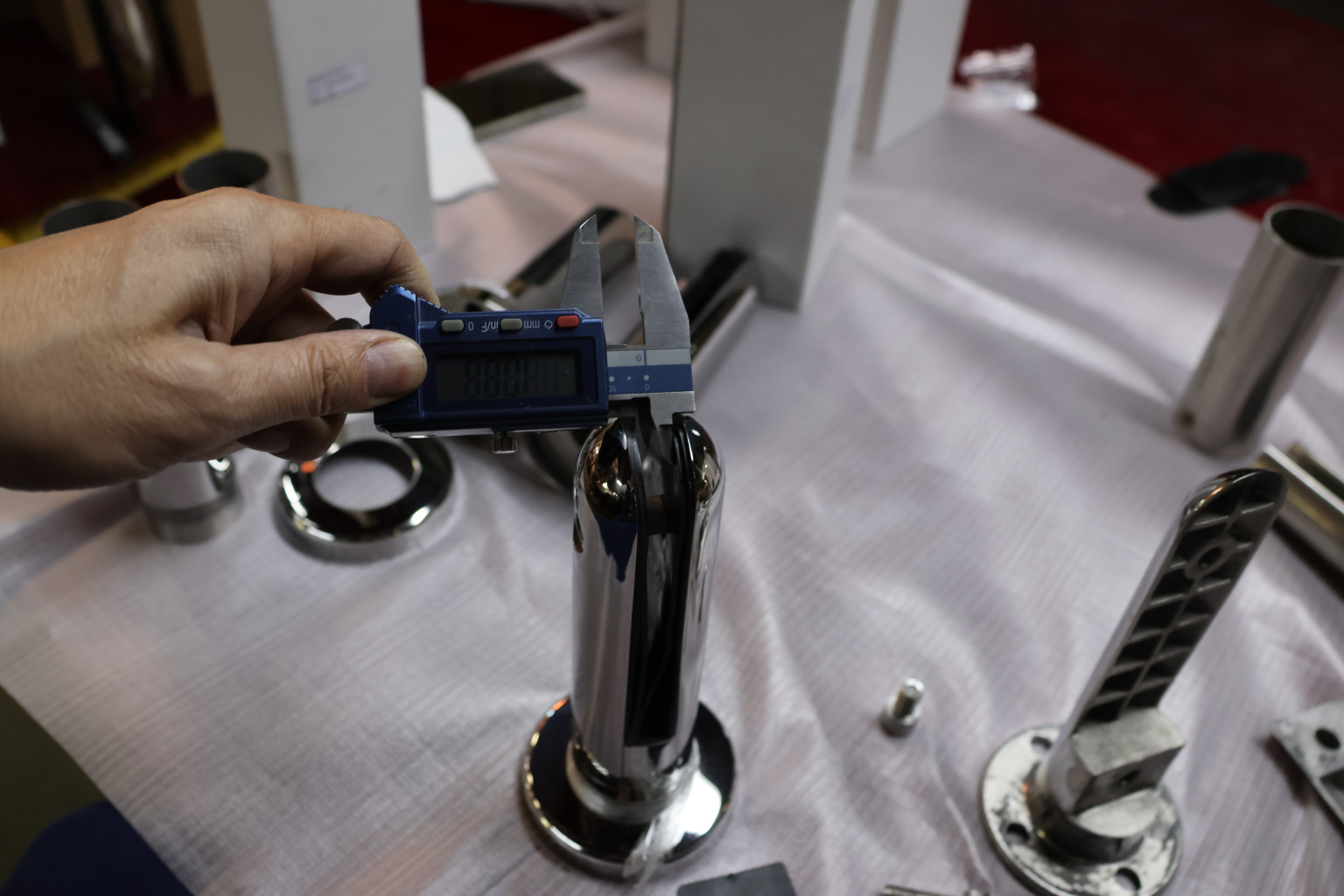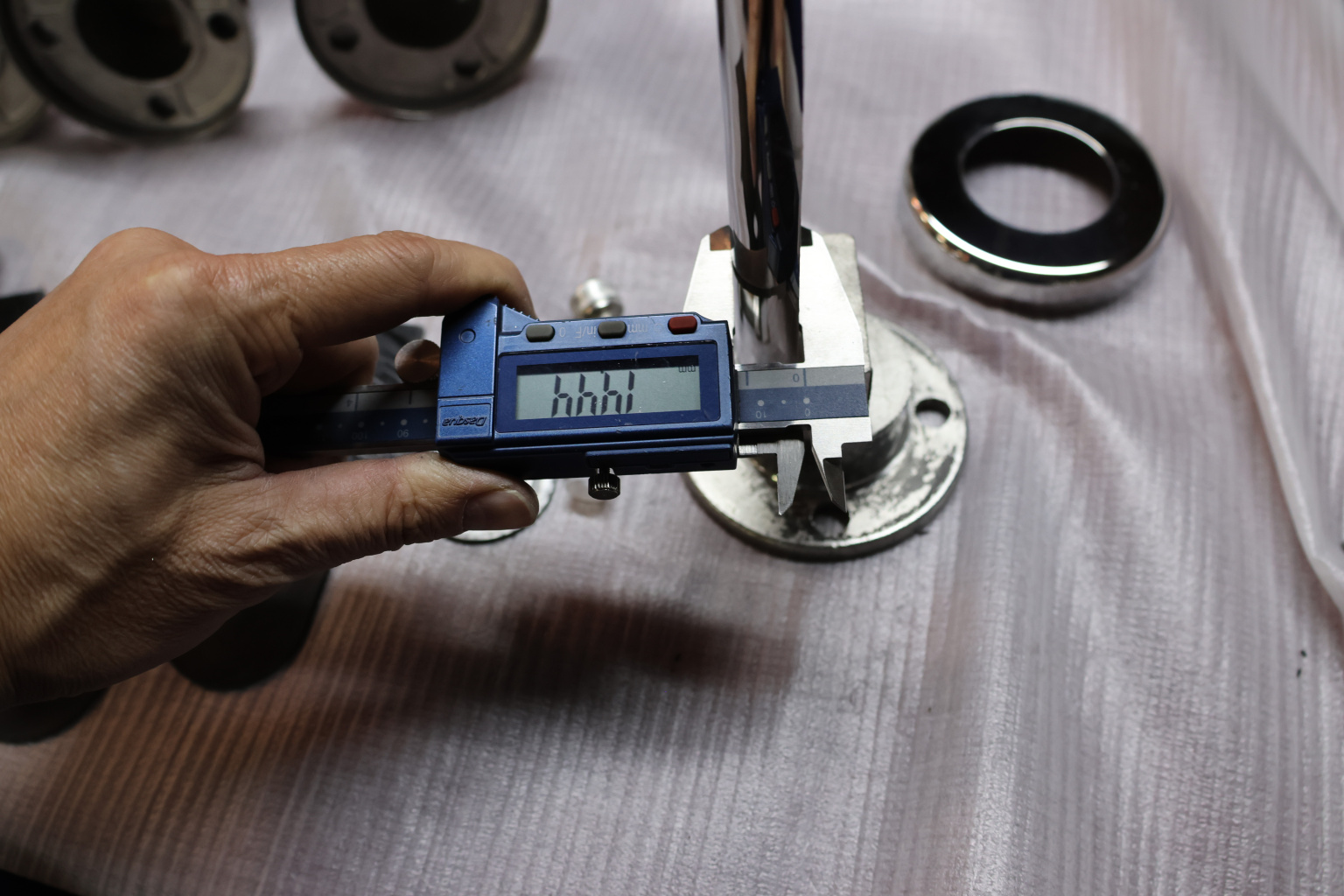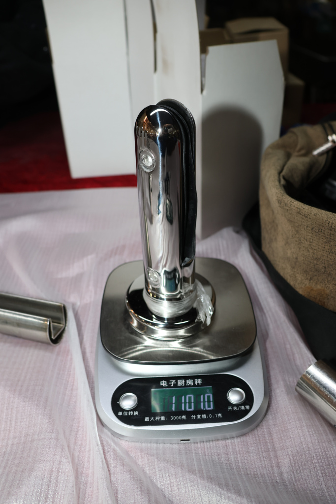 Стеклодержатель Ø50х10х18, шпилька М16х205 мм, для стекла 8-40 мм, AISI (201), с возможностью регулировки выноса до 65 мм, для торцевого крепления стекла, полированный, литой k277-3 купить в Тюмени