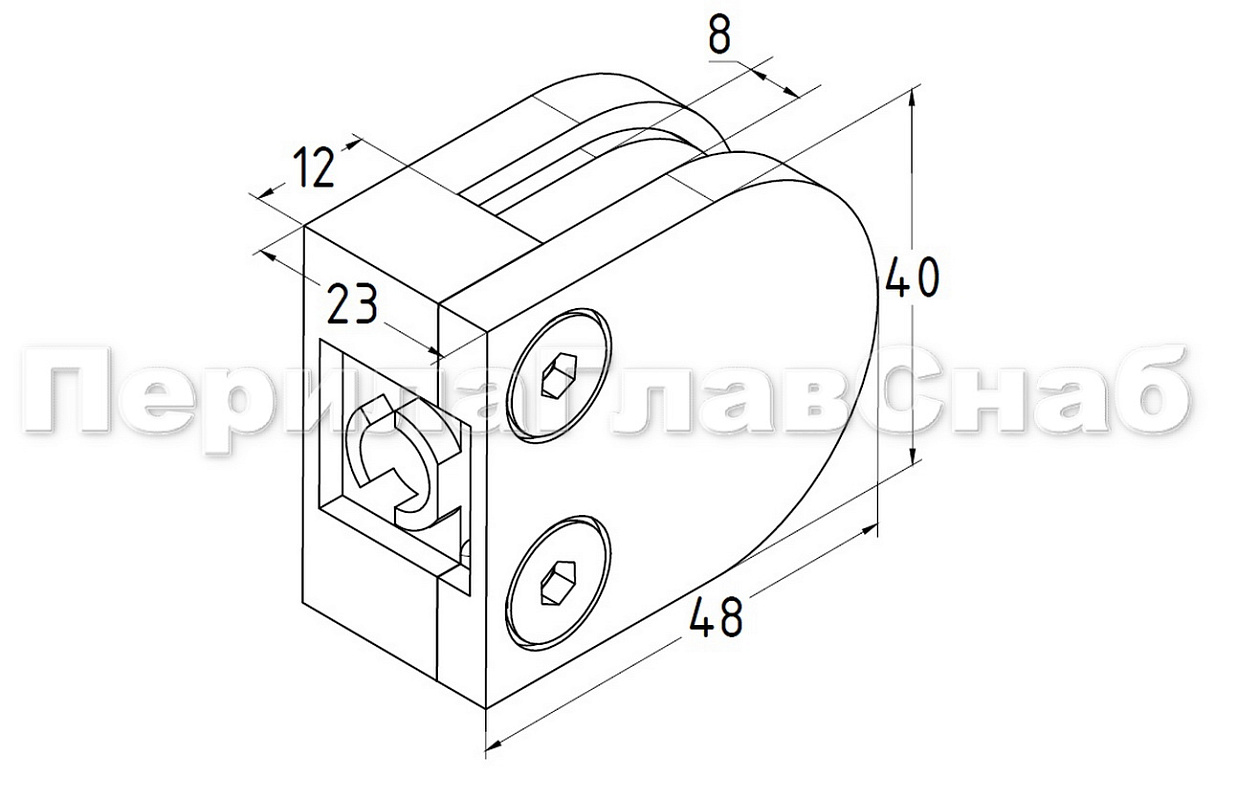 Стеклодержатель литой, под стекло 8 мм. 4+4 мм. на плоскость 40х22х48 полированный (AISI 304) k002-2