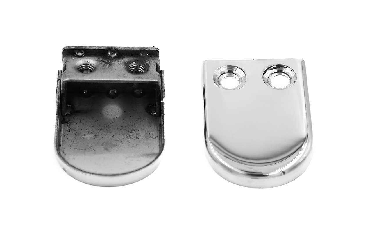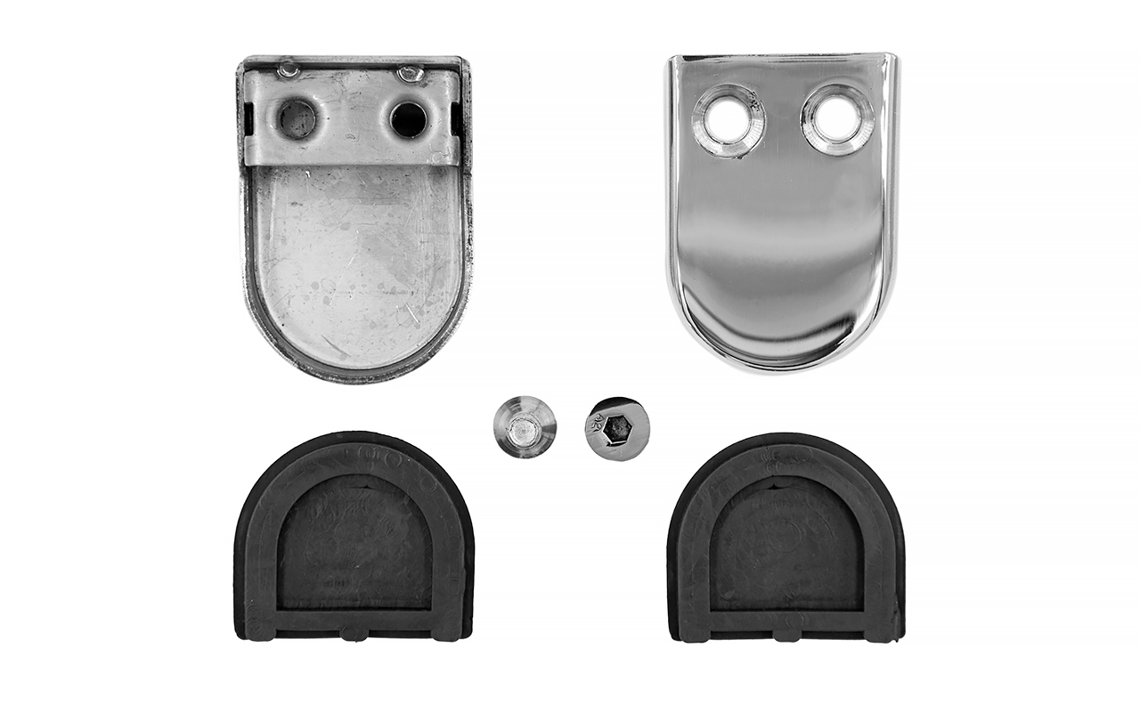 Стеклодержатель штампованный под стекло 8 мм (4+4 мм), под стойку Ø38.1 мм 40х24х55, полированный. Марка стали - AISI 304