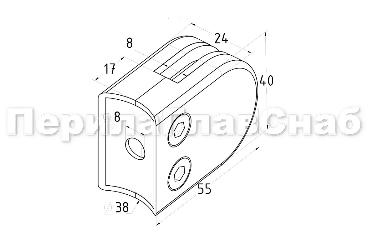 Предназначен для монтажа ограждений со стеклом толщиной 8 мм со стойкой Ø38.1 мм.