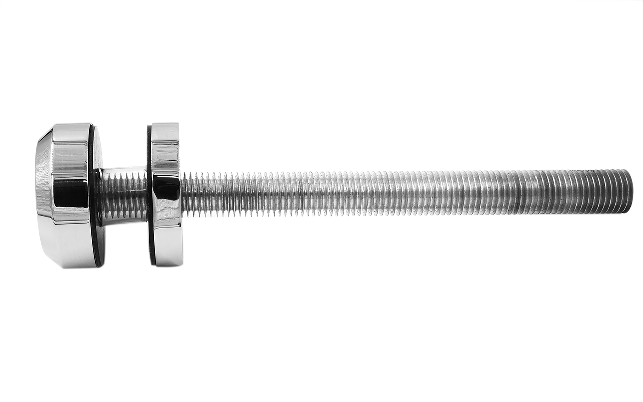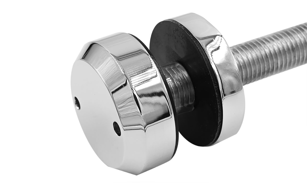 Стеклодержатель Ø50х10х18, шпилька М16х205 мм, для стекла 8-40 мм, с возможностью регулировки выноса до 65 мм, для торцевого крепления стекла, полированный, литой, точечный.