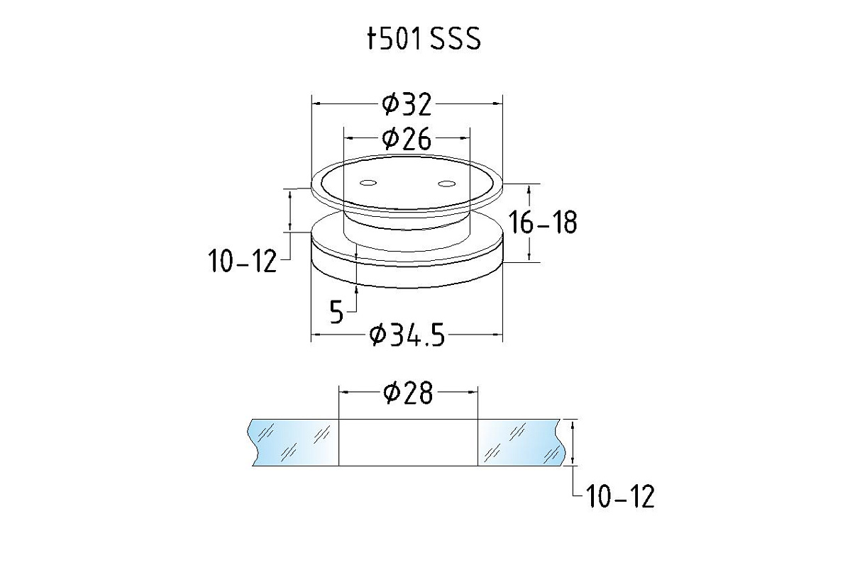 Точечный стеклодержатель 6 мм, нерегулируемый, без зенковки, для стекла 8-10 мм t501A SSS