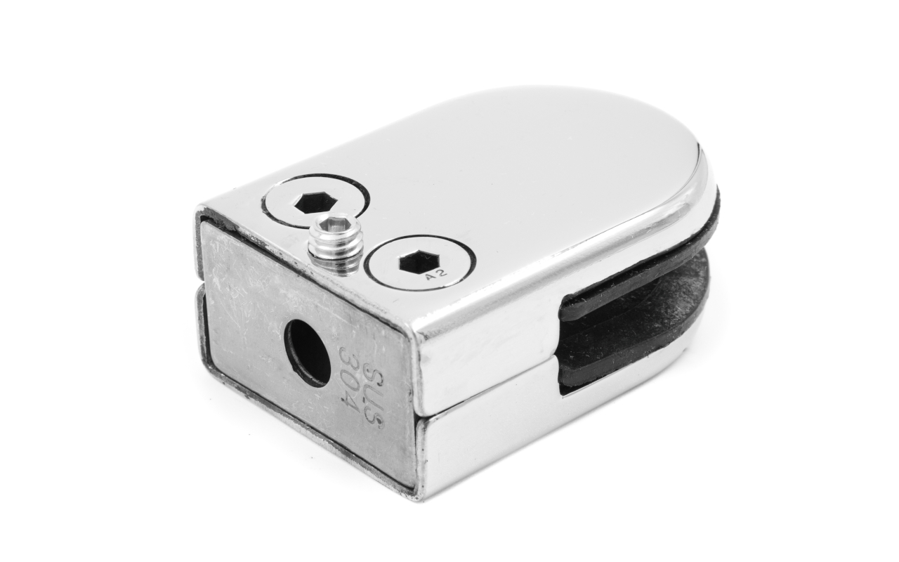 Стеклодержатель штампованный под стекло 10 мм (5+5 мм), под стойку Ø38.1 мм (39х24х55), полированный (AISI 304) k538-10 купить в Тюмени