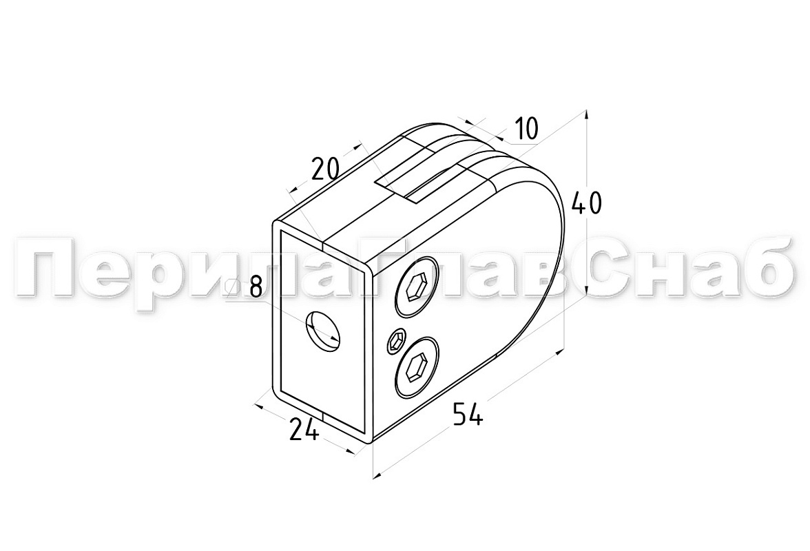k539-10 стеклодержатель штампованный под стекло 10 мм, на плоскость 40х24х54 полированный. Марка стали - AISI 304