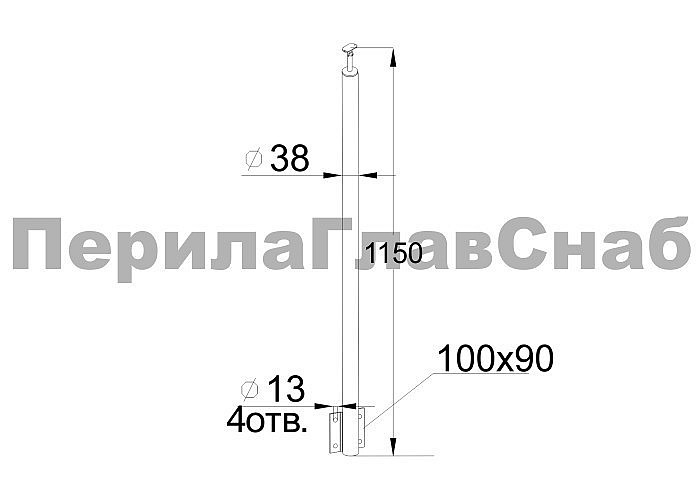 Готовая стойка Ø38,1мм, с боковым крепежом, высота 1080мм, полированная (aisi 304)