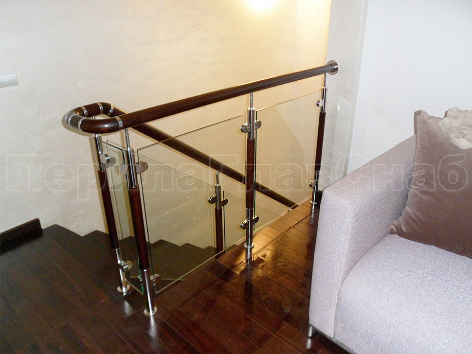 Данная стойка используются как проходная балясина и устанавливается между конечными стойками, справа как конечную стойку ограждения используют балясину k741-2-R , а в конце ограждения слева k741-2-L. При установке данных стоек используется закаленное стекло толщиной 8мм или триплекс 4+4. Балясина исполнена в классическом стиле на основе металлических стоек и усовершенствована деревянной составляющей, благодаря которой эта стойка хорошо вписывается в дизайн современных домов. Не малую роль в этом ограждении занимает стекло, ведь стекло можно сделать не просто прозрачным, а матовым, бронзовым, с рисунком и т.п. Ваше ограждение будет не только исполнять функцию безопасности, но и станет частью дизайна в доме.