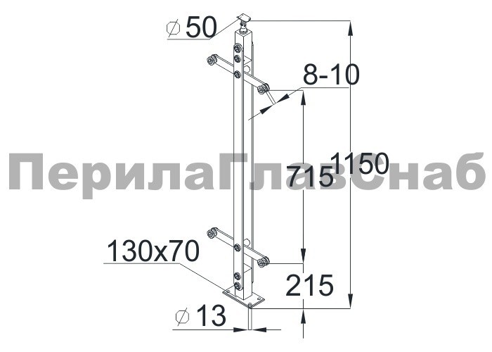 Готовая стойка 40х40х950 мм, деревянная, со вставками из нержавеющей стали 2х100 мм с 4 зажимными стеклодержателями k740-3 купить в Тюмени