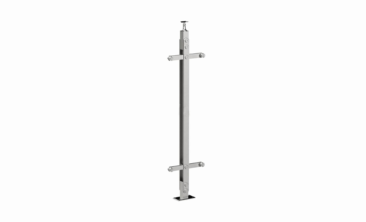 Стойка квадратная 40х40: 4 литых стеклодержателя, полированная, высота 950 мм (AISI 304) k746 купить в Тюмени