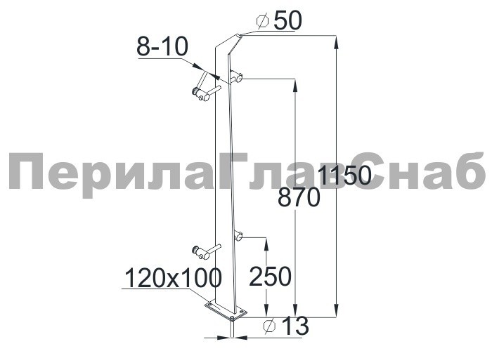 Стойка круглая Ø38.1: 2 литых зажимных стеклодержателя, под стекло 8-10 мм, полированная, высота 950 мм (AISI 304) k722-L купить в Тюмени