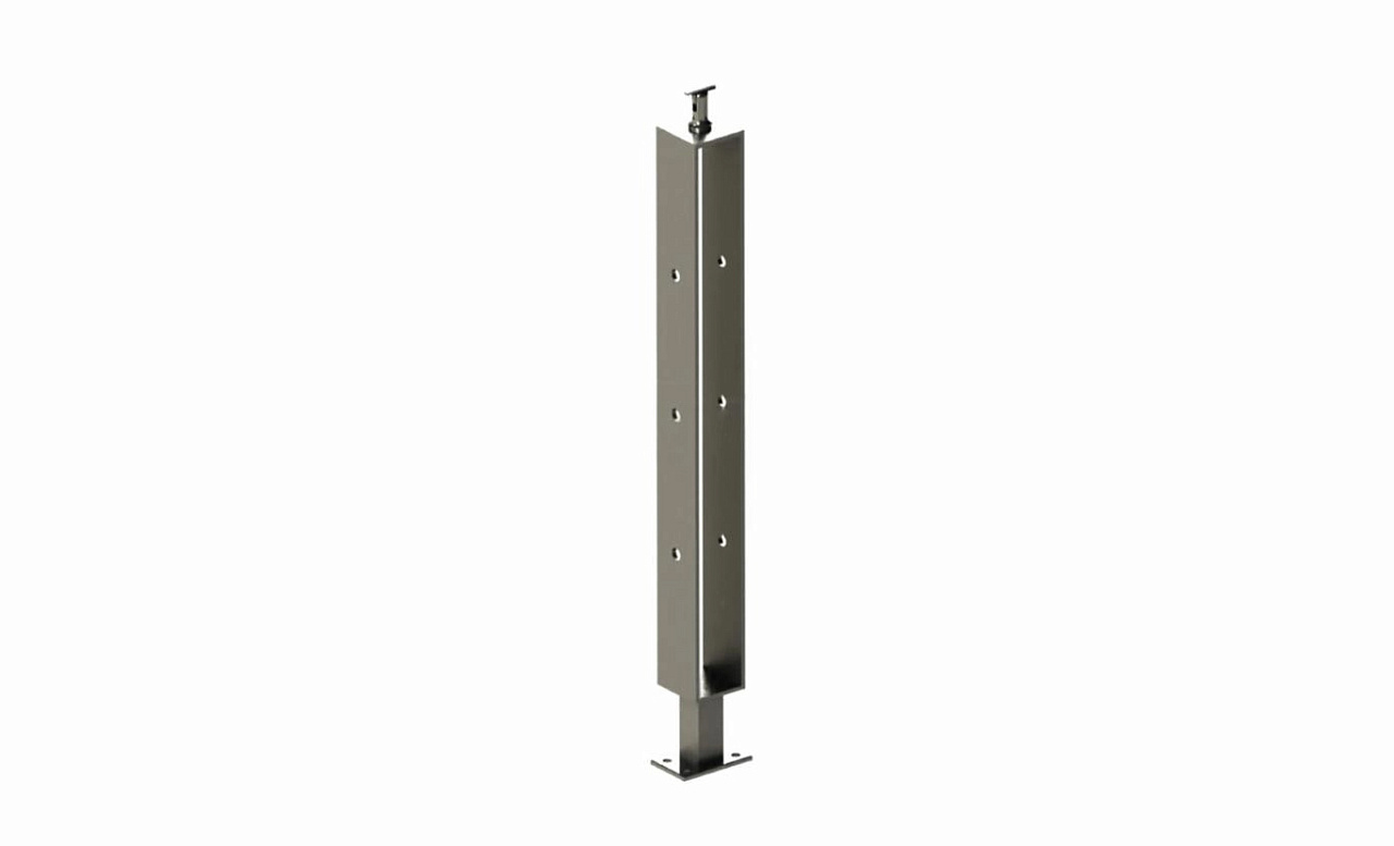 Стойка эксклюзивная квадратная с 3 отверстиями под ригель, крепление в пол, регулируемый ложемент (aisi 304)