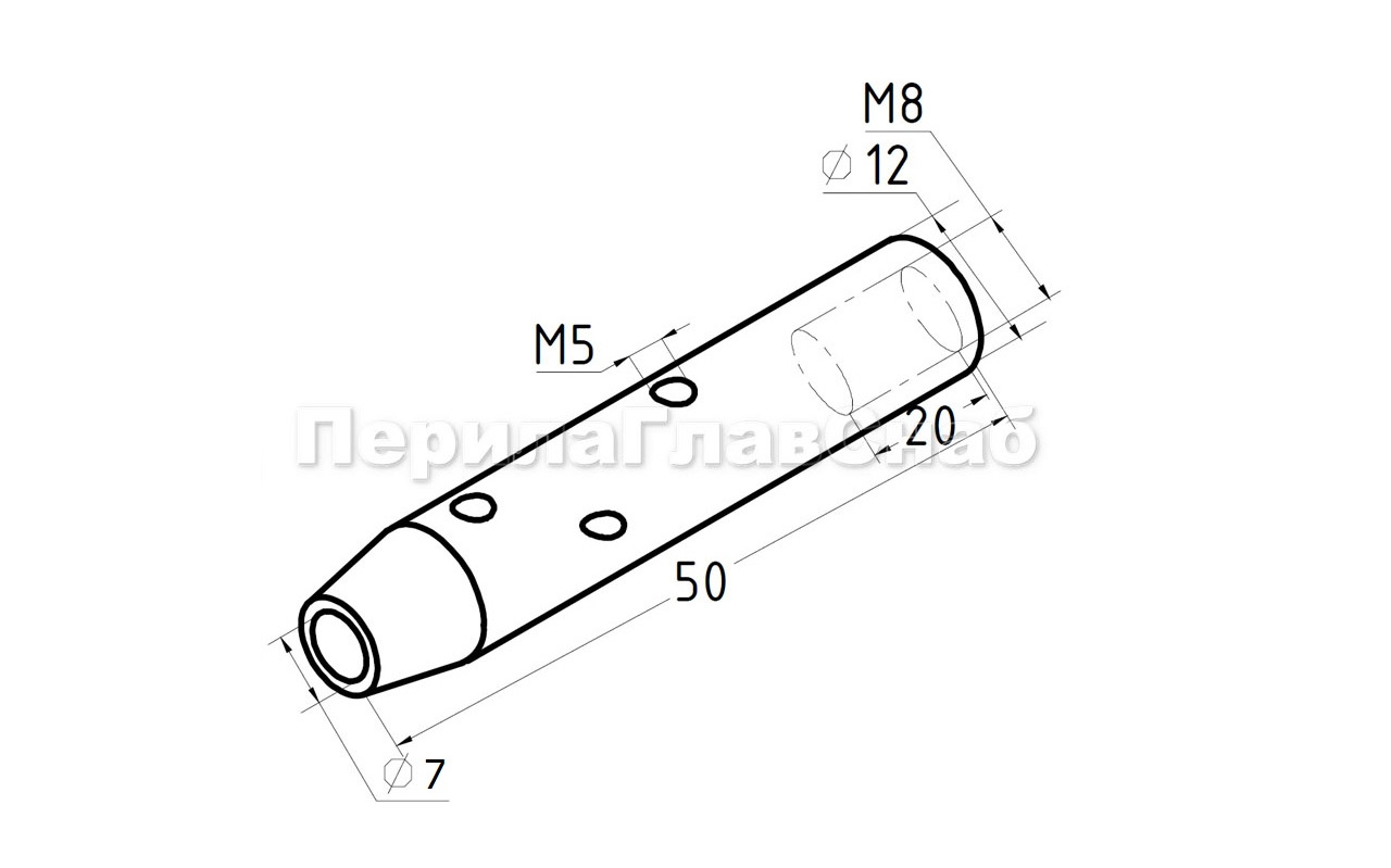 Держатель тросика Ø6 мм, короткий 50х12, прямой, под М8, полированный k240-2