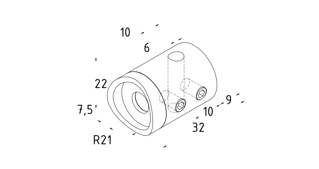 Держатель тросика Ø5 мм, 22х30 мм, под Ø42.4 мм, полированный. Марка стали - AISI 304