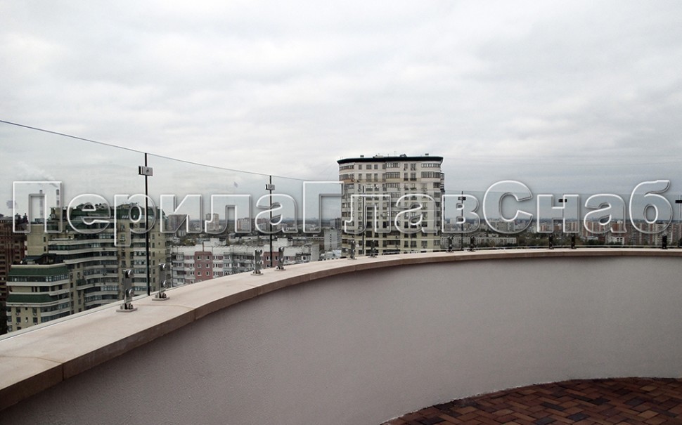 Ветрозащитное ограждение без стоек, на точечном креплении в торец