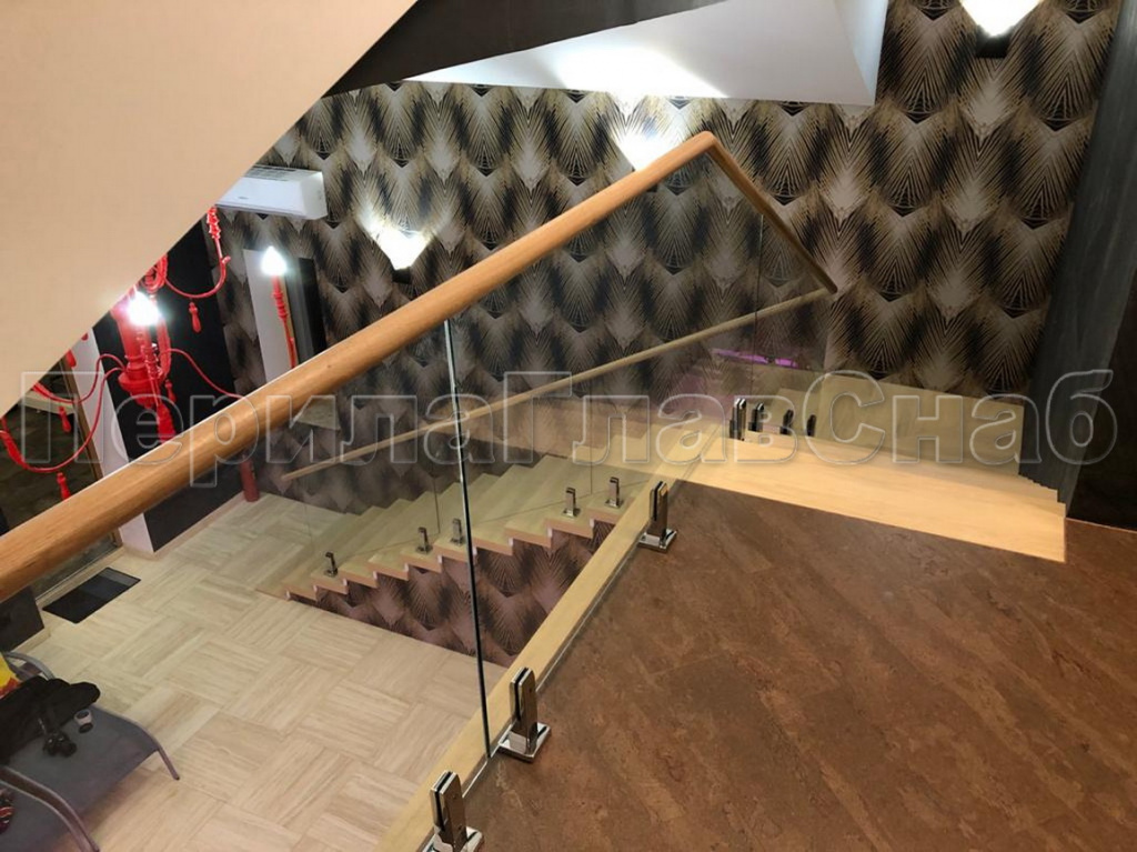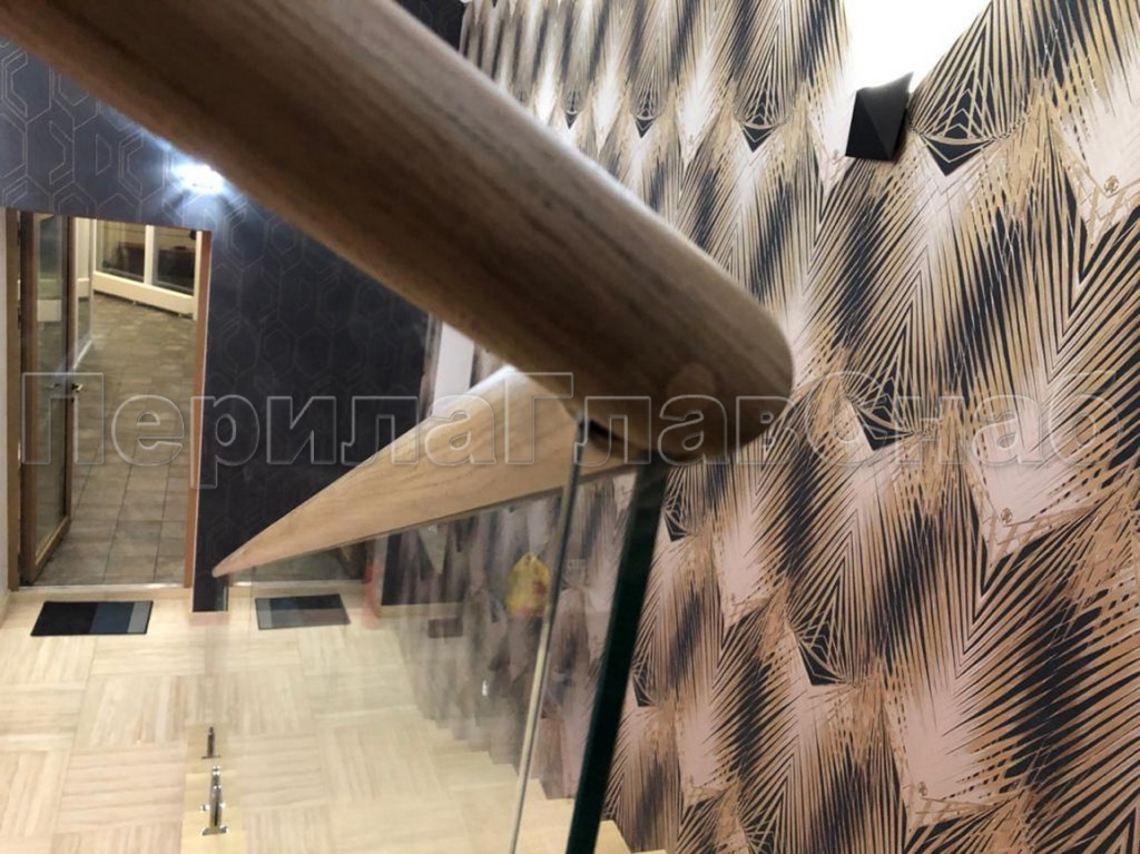 Конструктив: дубовые перила на калёном стекле 10 мм, с министойками