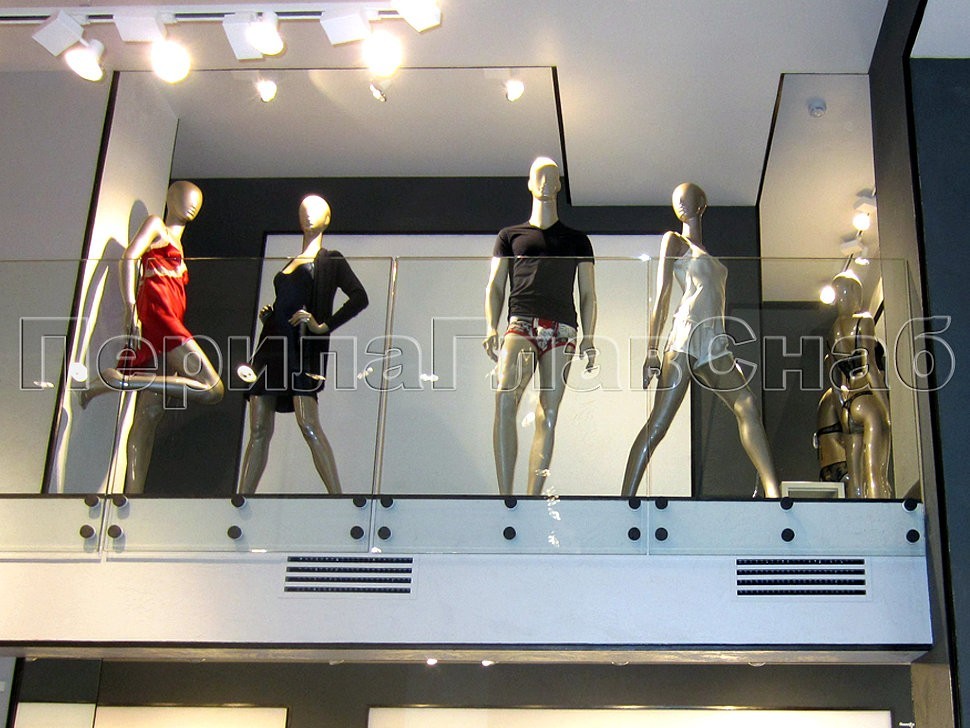 В центральном магазине женского белья итальянского бренда «Intimissimi» было смонтировано ограждение со стеклом галереи второго этажа салона.