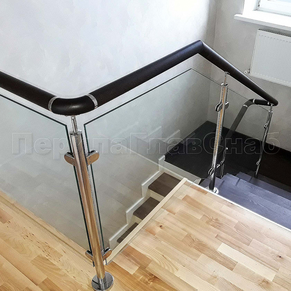 В поселке "Котово" Истринского района установили именно такие стеклянные ограждения на лестницу в частный дом. Дубовый поручень покрасили в цвет ступеней и получился вполне законченный вариант лестницы. Конструктив: ограждения из полированной нержавеющей стали внутренние с прозрачяным стеклом, толщиной 8 мм, с еврокромкой и притуплением углов. Поручень из массива дуба Ø49мм.