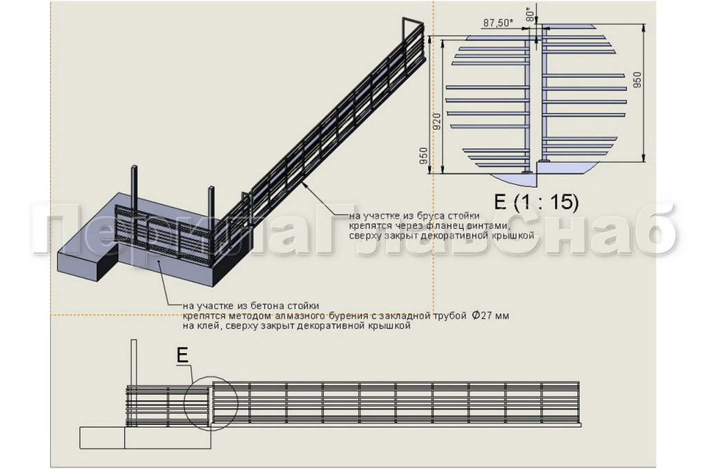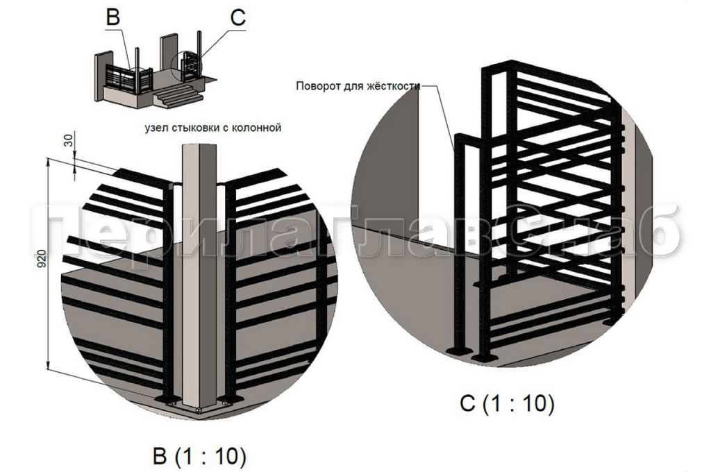 К нам в компанию обратился заказчик, с просьбой помочь изготовить и смонтировать тридцать пять погонных метров ограждений в частном доме, находящегося в коттеджном поселке класса De Luxe «Променад». Чтобы ограждения вписывались в общую концепцию экстерьера участка, мы предложили заказчику покрыть ограждения порошковой краской по каталогу Ral. А, для того чтобы избежать в дальнейшем коррозии металла мы использовали трубу и комплектующие из шлифованной нержавеющей стали. На шлифованную поверхность порошковая краска ложиться равномерно и помогает избежать, вздутия и в дальнейшем отслоения краски от металла. Для согласования с заказчиком конструктива и общего вида ограждений, нашим конструктором был разработан чертеж. Чертеж дает возможность заказчику понять где и как у него будут установлены перила и в случае возникновения дополнительных пожеланий внести корректировки до начала монтажа. Конструкция ограждения была выполнена из профильной трубы квадратного сечения, стойки и поручень труба 30*30мм, заполнение между стойками труба 20*20мм. Покраска порошковой краской должна производиться в заводских условиях с соблюдением всех технологических нюансов, в покрасочной камере.  Так как покрасочная камера имеет определенные размеры то для этого необходимо было разделить ограждения на секции. Работы по изготовлению ограждений проводились в несколько этапов, первым этапом был монтаж секций ограждений на объекте, затем его демонтаж для транспортировки в покрасочную камеру, после покраски секции доставлялись на объект для дальнейшего монтажа. Места сварки секций были зачищены, зашлифованы и подкрашены вручную, что никак не испортило внешний вид ограждений.  Работы по изготовлению и монтажу ограждений под ключ, были выполнены и сданы в течение тридцати рабочих дней.