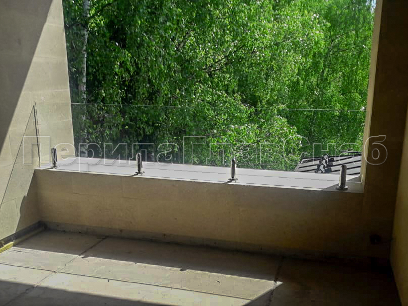 Клиент выбрал это элитное ограждение что-бы кардинально отличаться от других домов в своем поселке. При отделке фасада использовались и сочетались самые современные разноплановые материалы: дерево, камень, штукатурка, такого же подхода требовал и выбор перил. Наличие многочисленных балконов и террас требовало максимальной легкости и прозрачности конструкции ограждения, что бы любоваться замечательным видом на примыкающий лес. С функциональной точки зрения ветрозащита при таком конструктиве обеспечена на должном уровне. Минимальные зазоры между нижней кромкой стекла и полом делают уборку террас и балконов от листьев, воды и снега очень легкой и удобной. Напольные стеклодержатели собственного дизайна и производства компании ПерилаГлавСнаб имелись на складе в достаточном количестве. Это позволило реализовать проект в кратчайшие сроки. Данный тип крепления стекла выполнен из полированной нержавеющей стали AISI 304 для наружных работ. Грамотный измерительный процесс позволил согласовать проект с учетом пожеланий заказчика и быстро запустить процесс изготовления закаленного стекла. В местах крепления в стекле предусмотрены специальные отверстия для сквозного крепежа. Это обеспечивает дополнительную безопасность и уверенность казалось-бы на первый взгляд в хрупкой конструкции стеклянного ограждения. Из сорока шести метров ограждения были два участка по три метра установлены из единого стеклянного полотна по желанию заказчика. Что-бы воплотить в жизнь такое конструктивное решение пришлось прибегнуть к использованию манипуляторного крана, потому что стекла такой длины не представлялось возможным пронести через дверные проемы дома. Заказчик ровным счетом как и мы остались довольны полученным результатам, красивые фотографии говорят сами за себя.
