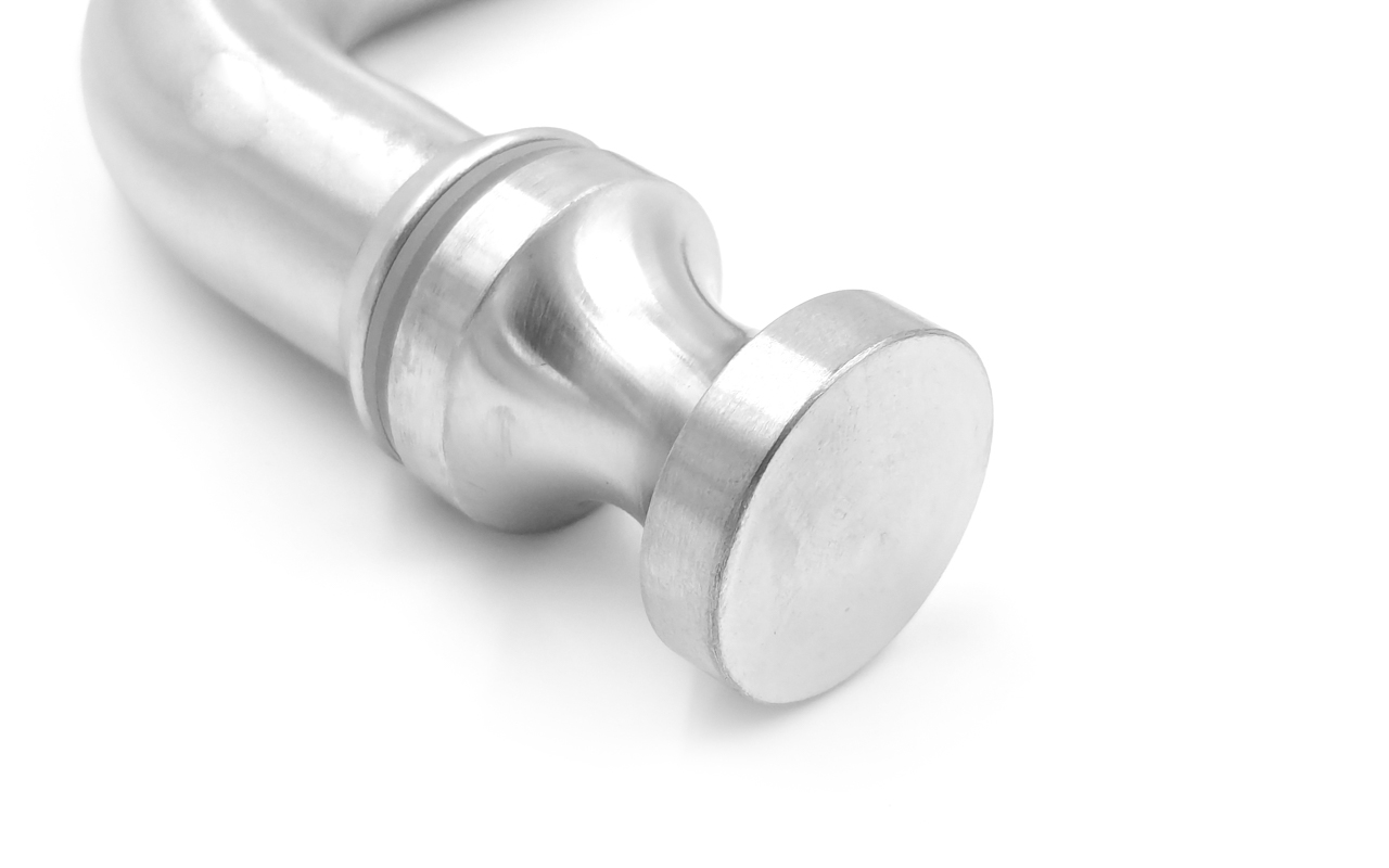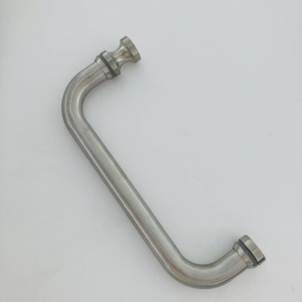 Дверная ручка с кнобом для стекла 8-10 мм, 19х201 мм, отверстие 12 мм, шлифованная, марка стали- AISI 304