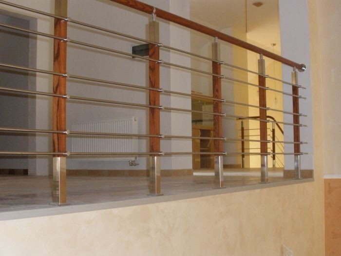 Записаться на встречу            Три ригеля на держателях, квадратные поручень и деревянные стойки