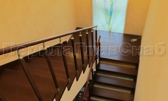 Записаться на встречу            Ограждения со стойками в каждую ступень с круглым деревянным поручнем без ригелей