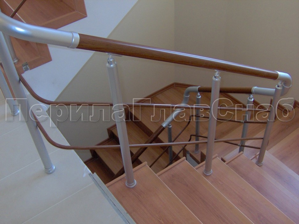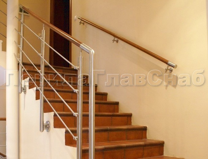 Записаться на встречу Два ригеля на держателях, круглый деревянный поручень и круглые стойки