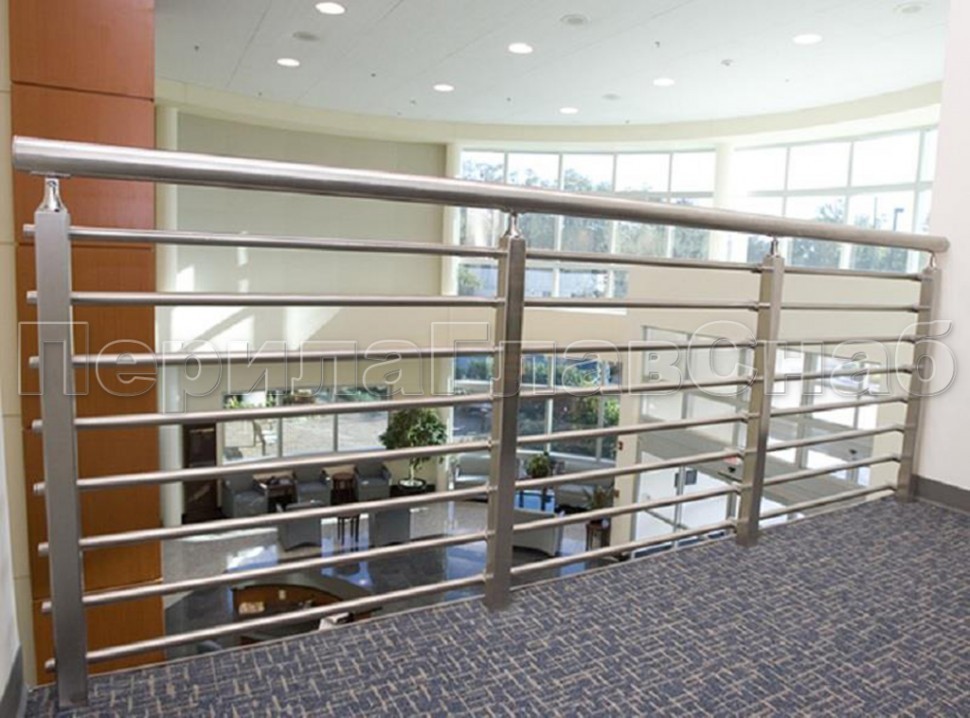 Четыре ригеля на сварке, круглый поручень и квадратные стойки