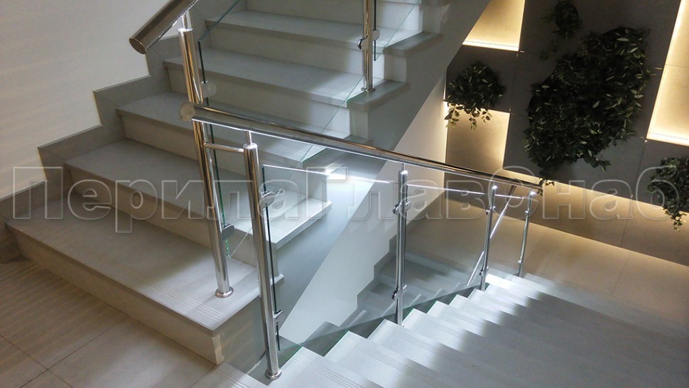 Ограждение для лестницы из нержавейки с зажимными стеклодержателями для крыльца