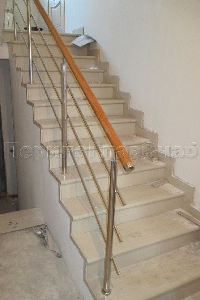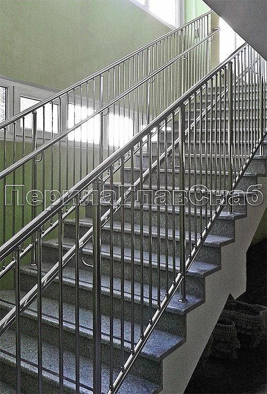 Три ригеля на сварке, круглый поручень и круглые стойки для крыльца