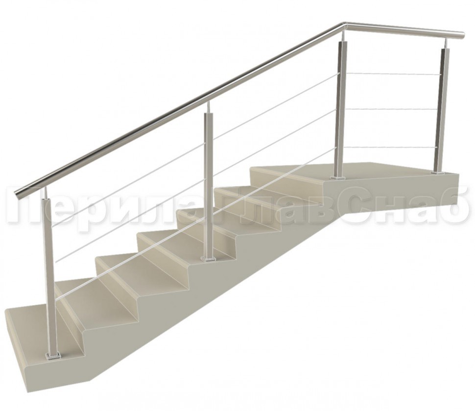 Ограждения с квадратным поручнем со стойками в каждую ступень без ригелей