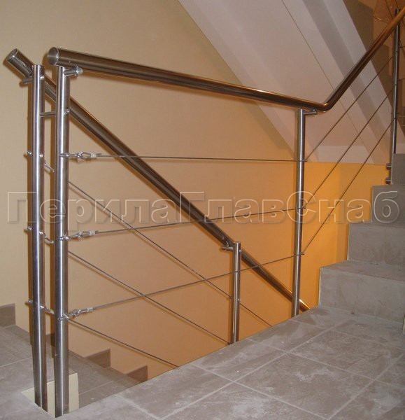 Ограждения из нержавейки. Заполнение из 7ми тросиков + декоративные наконечники
