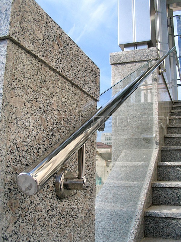Ограждение для лестницы из нержавейки с зажимными стеклодержателями для крыльца