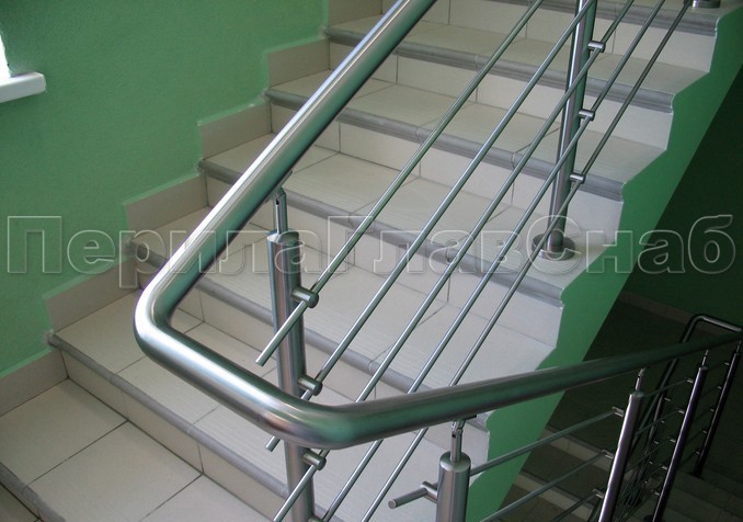 Четыре ригеля на сварке, круглый поручень и квадратные стойки