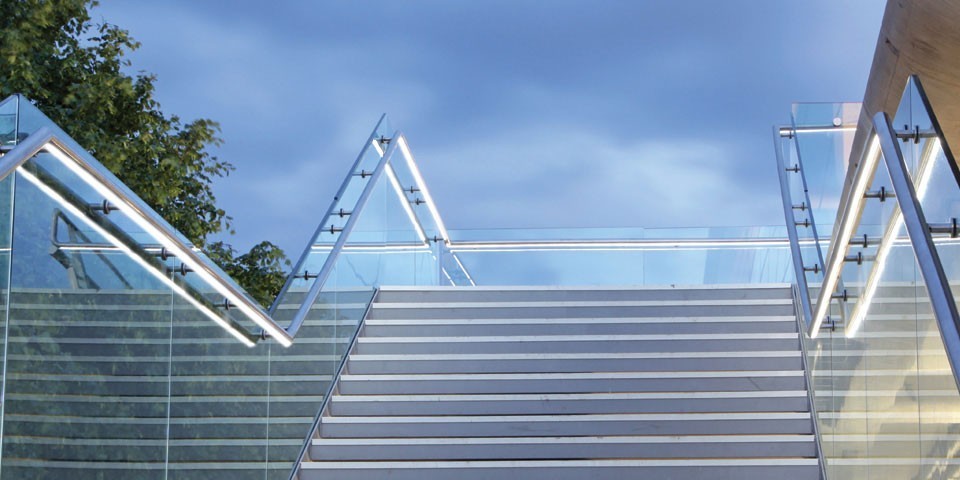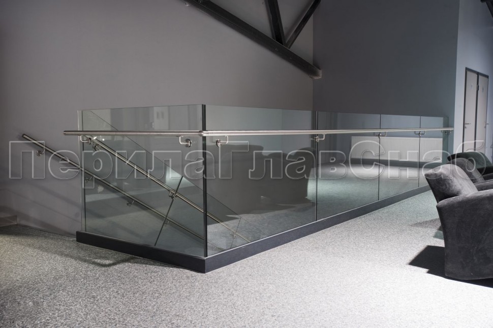 Записаться на встречу            Ограждение с поручнем на выносе в зажимном профиле на лестнице