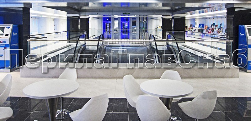 Супер-предложение для торговых и бизнес центров класса А и А+, а также для гостиниц - ограждение из стекла без стоек. Такая конструкция ограждения создает единое прозрачное пространство. Впечатление простора и масштаба здания заставляет все пространство работать вместе. Благодаря полной прозрачности более эффективно работают установленные лампы осветительных приборов - световой поток проникает сквозь стекло и заполняет пространство внутри атриума. "WOW-эффект" достигается при первом взгляде и оценке посетителей - интерьер с такими цельностеклянными ограждениями будет респектабельным, современным и запоминающимся.