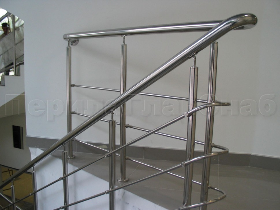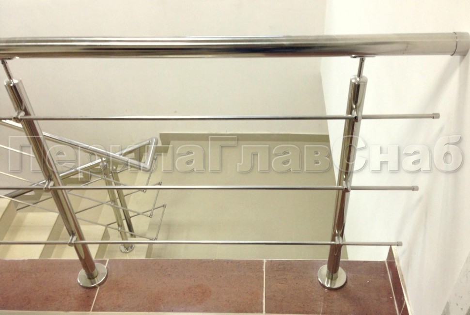 Четыре ригеля на держателях, круглый поручень и круглые стойки